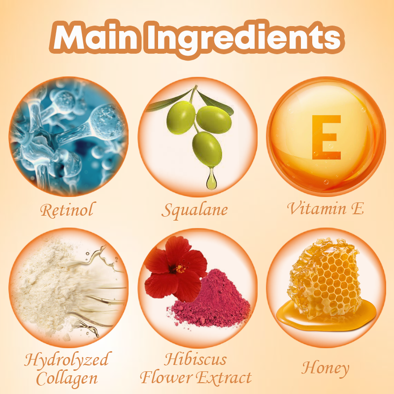 Retinol: Enhances slimming by boosting collagen production, which helps firm and tighten skin on the neck, waist, belly, and legs, leading to a more streamlined appearance.
