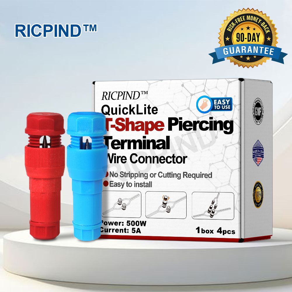At RICPIND™, we simplify your wiring experience with innovative and tool-free solutions. Our RICPIND™ QuickLite T-Shape Piercing Terminal Wire Connector offers effortless installation with a tool-free design, eliminating the need for wire stripping or cutting. Crafted from high-quality materials, it ensures secure connections and reliable performance for all your wiring projects.