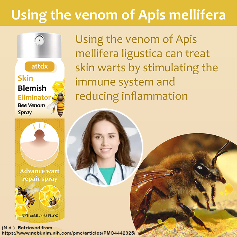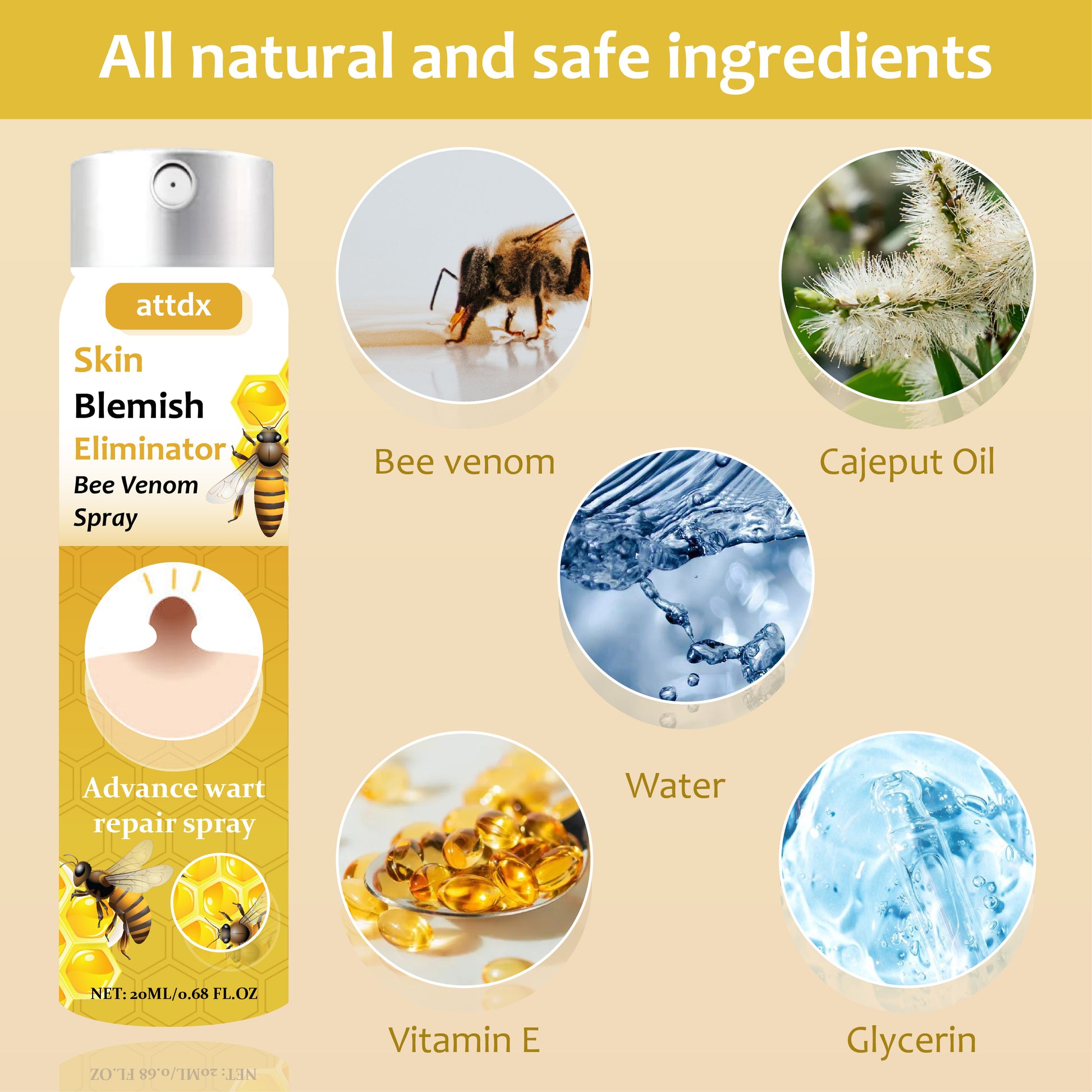 ATTDX Skin BlemishEliminator Bee Venom Spray offers a revolutionary solution for removing skin tags and eliminating warts effectively. Harnessing the power of bee venom, this advanced formula targets skin imperfections with precision, promoting clear and flawless skin. Experience visible results and renewed confidence with consistent use of this innovative blemish eliminator.