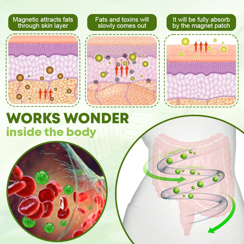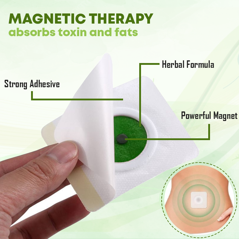 The patch utilizes herbal formula and magnetic therapy to aid in weight management and regulate sugar levels.